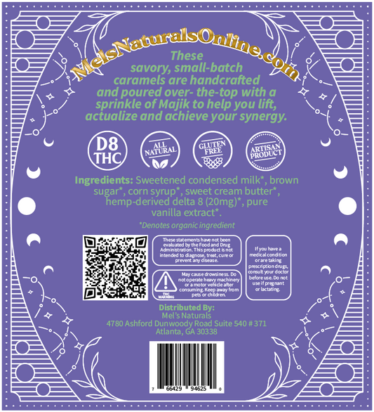 Mel's Majik caramels are handcrafted and carefully simmered, cooled and wrapped into mouth-watering perfection. Mel's Energies accesories are selected piece-by-piece for uniqueness and purpose.